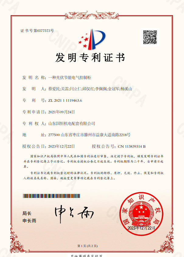 山東國恒機(jī)電配套有限公司簡      介 山東國恒機(jī)電配套有限公司是一家集新能源、高科技、智能化生產(chǎn)研發(fā)、制造、銷售為一體的綜合性現(xiàn)代化高新技術(shù)企業(yè),公司座落在魯班故里、墨子之鄉(xiāng)滕州,公司始建于2005年,注冊資本1億元,擁有各類中、高級專業(yè)技術(shù)人員100余名。主營業(yè)務(wù)涉及高科技智能電力裝備、新能源儲備輸送,220kv及以下輸變電工程勘察設(shè)計、制造、銷售、安裝、售電和智能充電樁能效運(yùn)維,并從事生產(chǎn)制造交直流充電樁設(shè)備、成套開關(guān)設(shè)備、各型號高低壓開關(guān)柜、箱式變電站等電氣設(shè)備,是棗莊地區(qū)唯一一家國資入股的新能源高端品牌企業(yè)。公司擁有獨(dú)立… 【查看更多】
